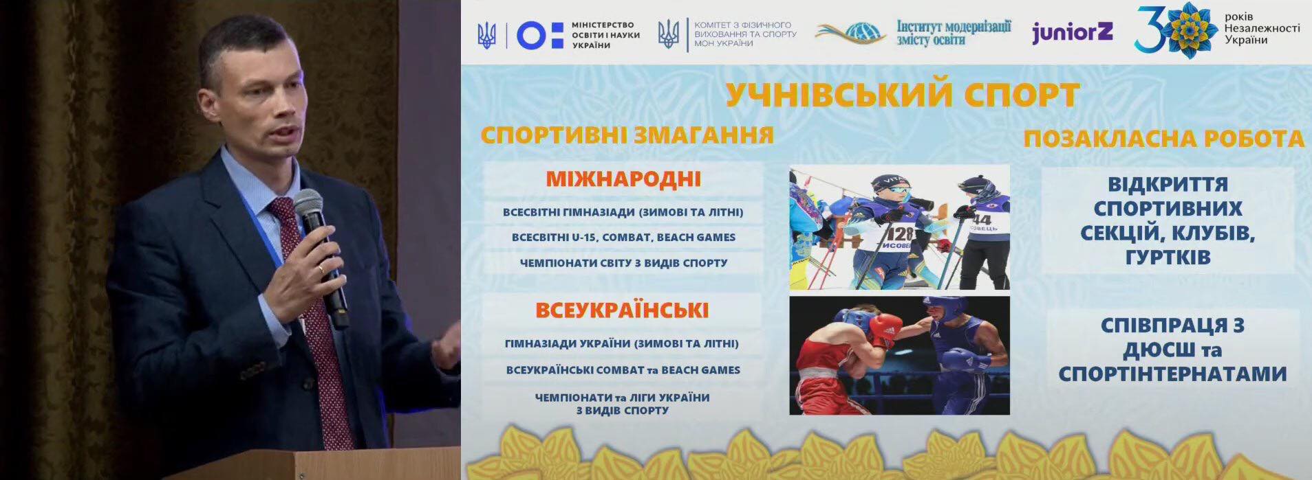 На завершення заступник голови Комітету фізичного виховання та спорту МОН Володимир Артамонов розповів, як за допомогою квест-уроків урізноманітнити викладання не лише уроків фізкультури, а й хімії, фізики, математики та літератури.